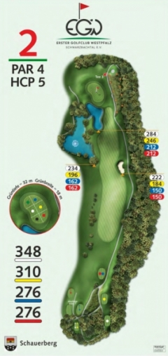 Par 4, Hcp 5, 348 m (weiß), 310 m (gelb), 276 m (blau), 276 m (rot)